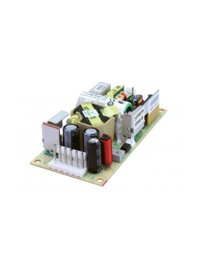 The NPS40-M series of open-frame AC-DC power supplies comprises five single output models, offering voltages of 5 V, 12 V, 15 V, 24 V or 48 Vdc. All five models feature ITE and medical safety approvals and are equipped with dual AC fuses. The power supplies have a typical full load efficiency of 87% and a no-load power consumption of less than 300 mW. NPS40-M series power supplies are primarily designed for use in information technology equipment (ITE) and light industrial systems, as well as for equipment intended for non-patient contact and non-patient critical use in low power medical, dental and laboratory applications.